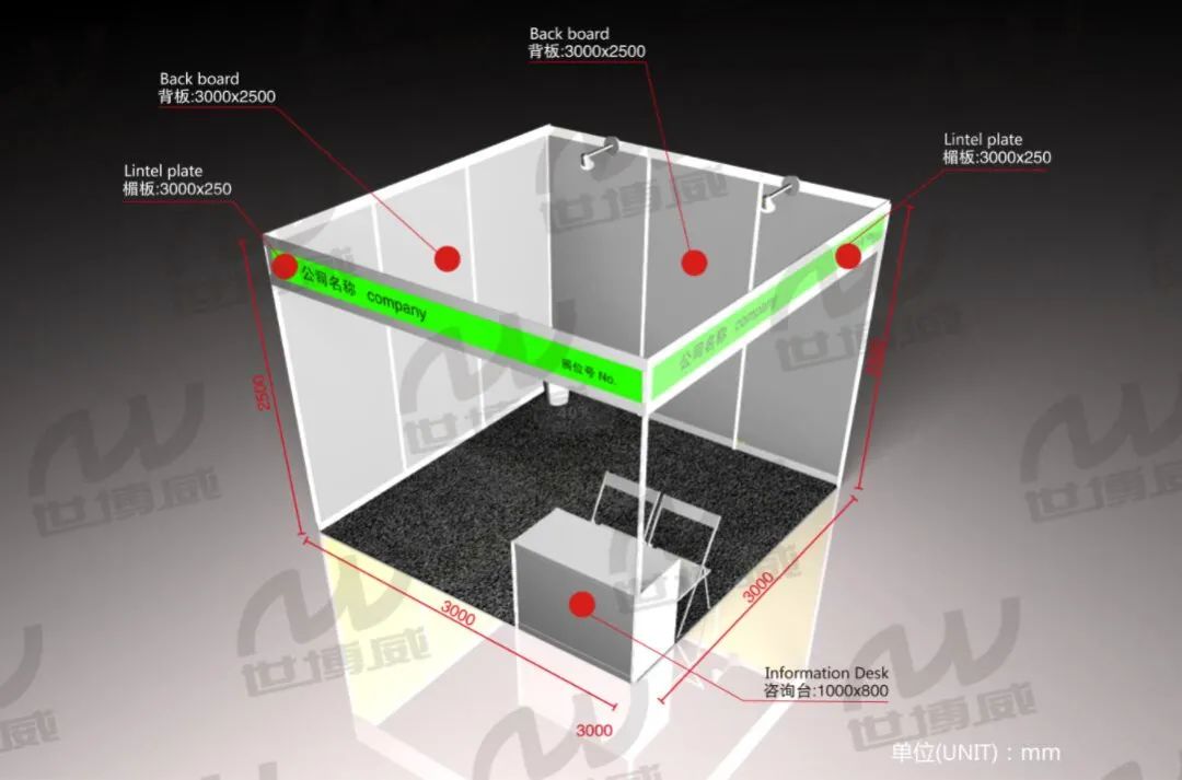 豪华展位单开(3m×3m)9㎡RMB:15800