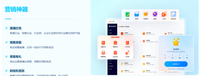 直播互动:红包雨、抽奖、答题红包